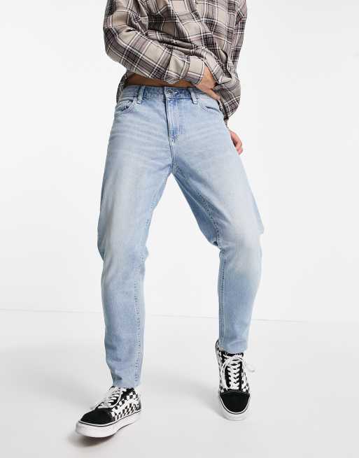 ASOS DESIGN – Ljusblå, klassiska, styva jeans med rå fåll