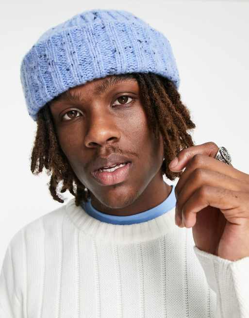 ASOS DESIGN – Ljusblå, liten ribbad fiskarmössa