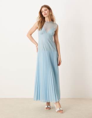 ASOS DESIGN – Ljusblå midiklänning med spetsliv och veckad kjol