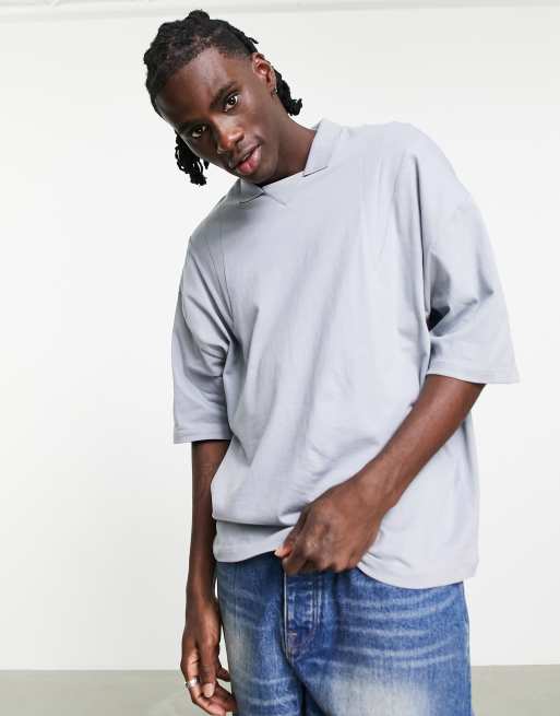 ASOS DESIGN – Ljusblå panelsydd pikétröja i oversize-modell