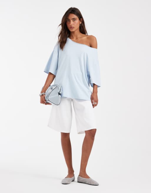 ASOS DESIGN – Ljusblå, slouchy t-shirt i oversize med bara axlar