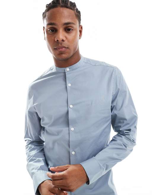 ASOS DESIGN – Ljusblå, smal skjorta med murarkrage