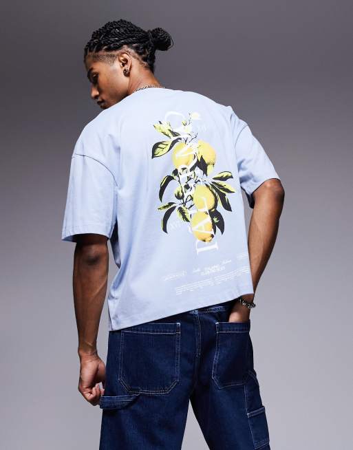 ASOS DESIGN – Ljusblå t-shirt i oversize med boxig passform och citrontryck