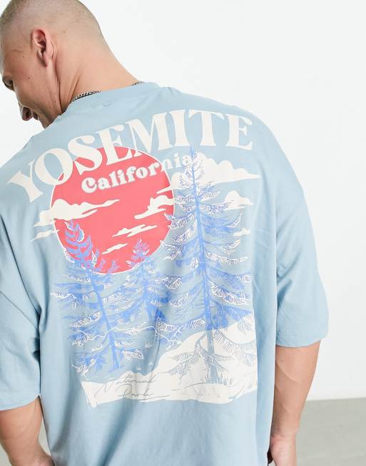 ASOS DESIGN – Ljusblå t-shirt i oversize med utomhustryck