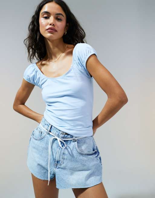 ASOS DESIGN – Ljusblå topp med puffärmar