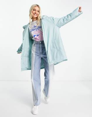 ASOS DESIGN – Ljusblå, vadderad regnjacka med knäppning och huva – MBLUE