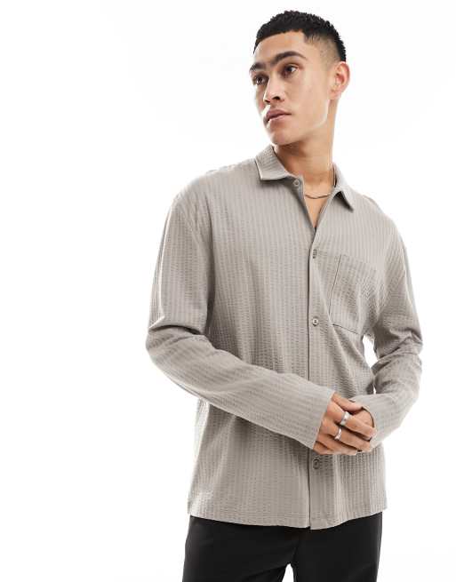 ASOS DESIGN – Ljusbrun, avslappnad skjorta i bäckebölja med långa ärmar
