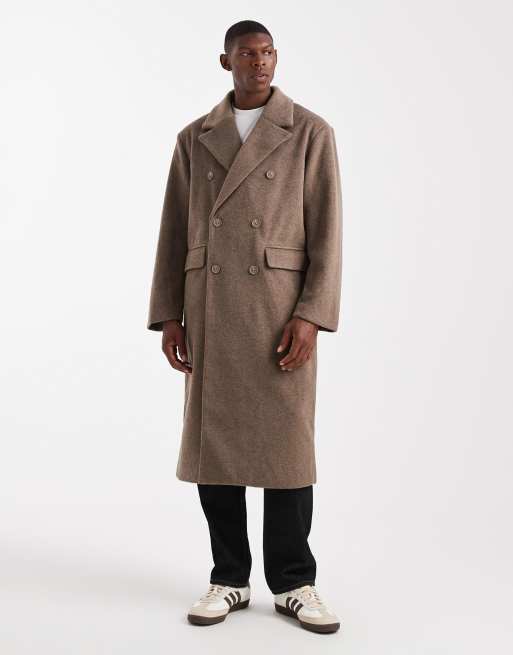 ASOS DESIGN – Ljusbrun, lång kappa i oversize och yllestil