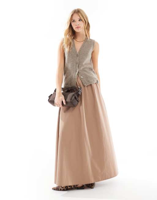 ASOS DESIGN – Ljusbrun mjuk maxikjol i rund modell