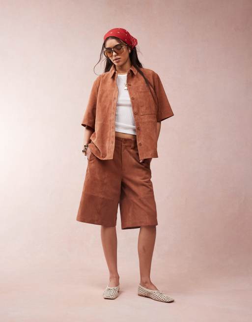ASOS DESIGN – Ljusbruna bermudashorts i mocka, del av set