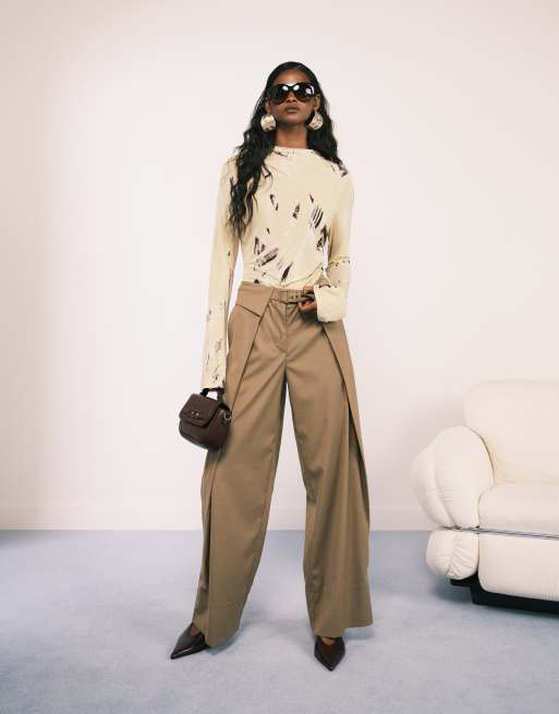 ASOS DESIGN – Ljusbruna, figursydda byxor med nedvikt midjeband