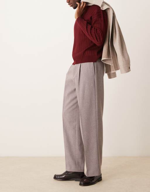 ASOS DESIGN – Ljusbruna finbyxor i yllemix med vida ben