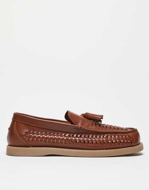 ASOS DESIGN – Ljusbruna, vävda loafers i läder