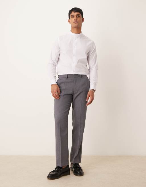 ASOS DESIGN – Ljusgrå finbyxor i ull och twillmix med raka ben
