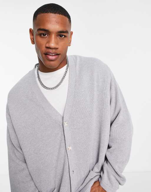 ASOS DESIGN – Ljusgrå medeltjock kofta i bomull