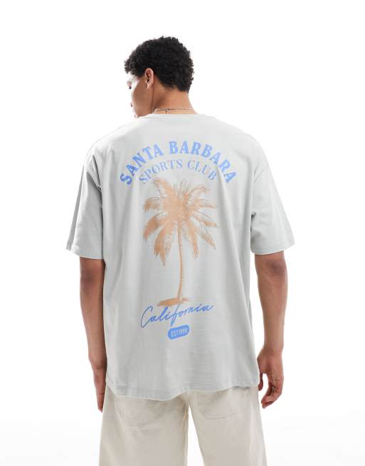 ASOS DESIGN – Ljusgrå t-shirt i oversize med somrigt palmtryck