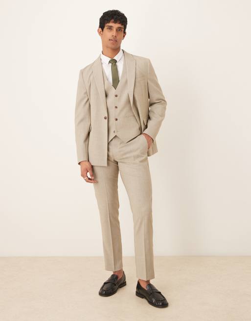ASOS DESIGN – Ljusgråmelerad, smal kostym med textur