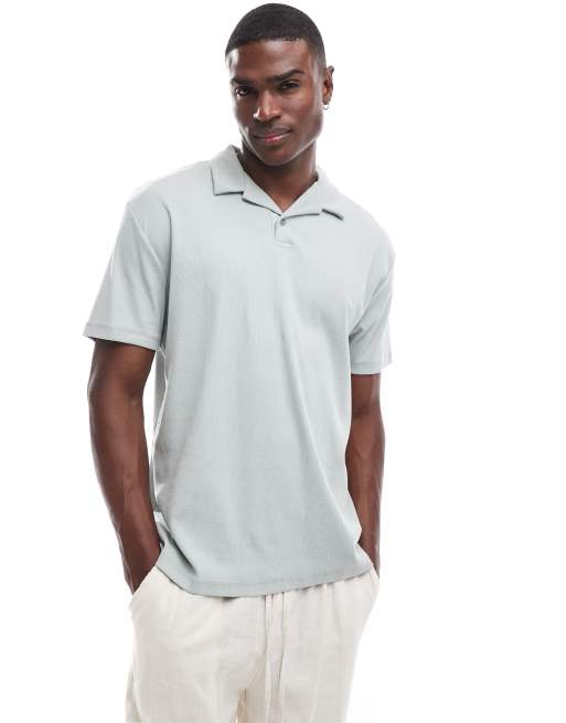 ASOS DESIGN – Ljusgrön, ribbad pikétröja med platt krage och avslappnad passform