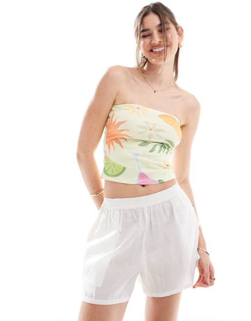 ASOS DESIGN – Ljusgul bandeau-topp med semestertryck