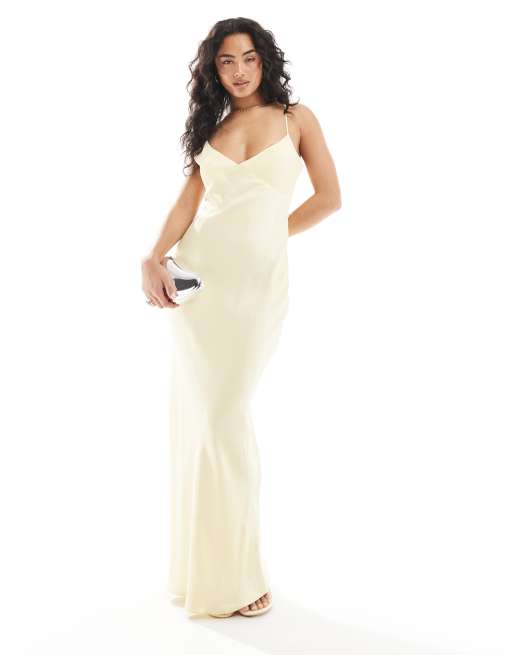 ASOS DESIGN – Ljusgul maxiklänning med knytning baktill i satin