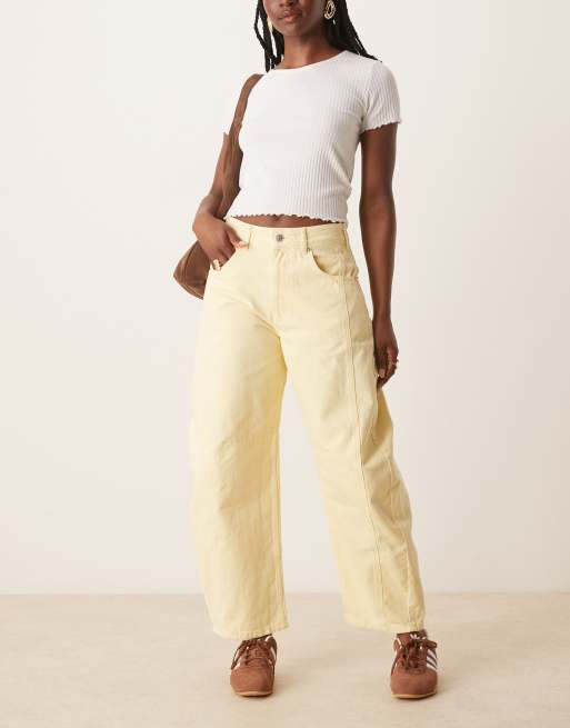 ASOS DESIGN – Ljusgula, korta jeans i oversize med barrelben och paneler