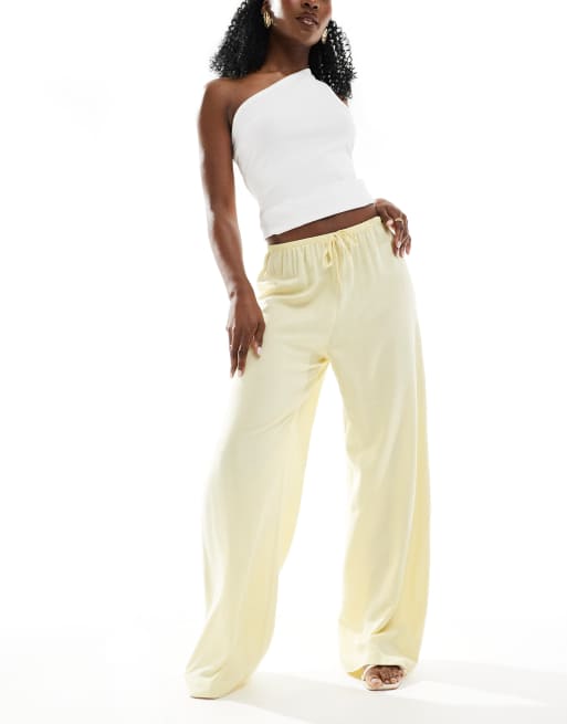 ASOS DESIGN – Ljusgula linnebyxor med vida ben och resårmidja