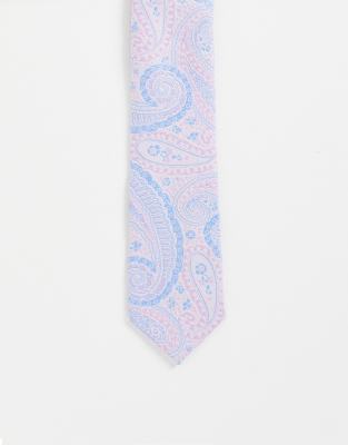 ASOS DESIGN – Ljusrosa, blå och paisleymönstrad slips med smal passform