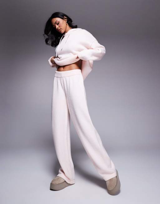 ASOS DESIGN – Ljusrosa, fluffiga, stickade byxor med vida ben, del av set