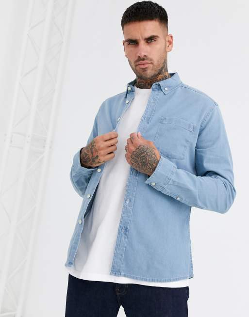 ASOS DESIGN – Ljustvättad jeansskjorta med smal passform och stretch - MBLUE
