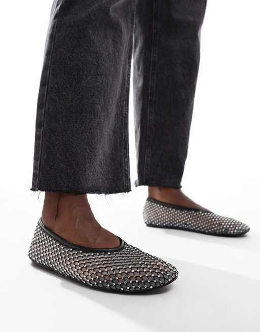 ASOS DESIGN – Loki – Svarta, utsmyckade ballerinaskor i mesh