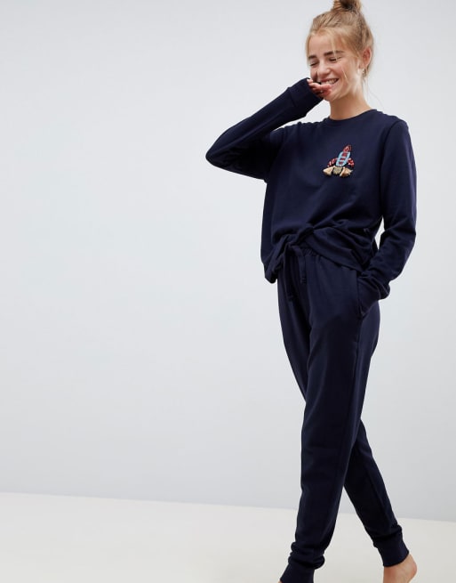ASOS DESIGN - Lounge Rocket - Utsmyckad sweatshirt samt mjukisbyxor