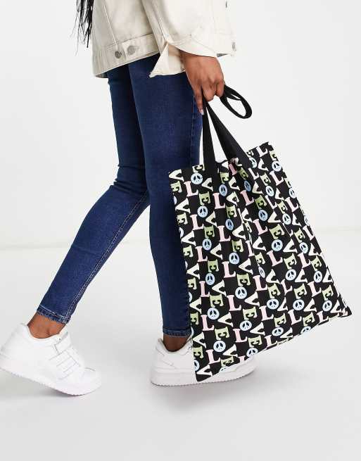 ASOS DESIGN – "Love"-mönstrad toteväska i canvas