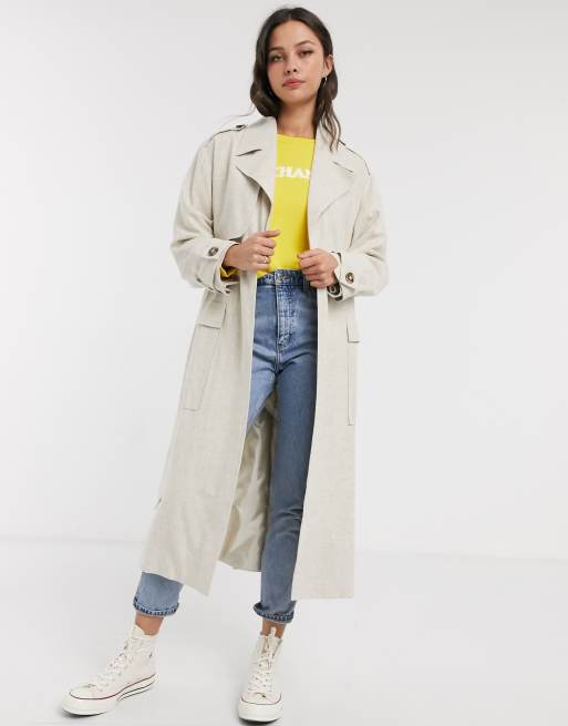 ASOS DESIGN Luxe – Gräddvit trenchcoat i linneliknande material med oversize-passform