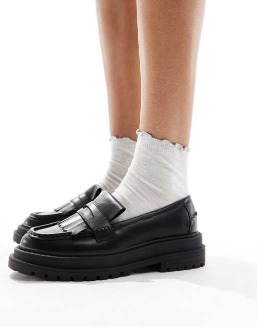 ASOS DESIGN – Majesty – Svarta, grova loafers med fransar