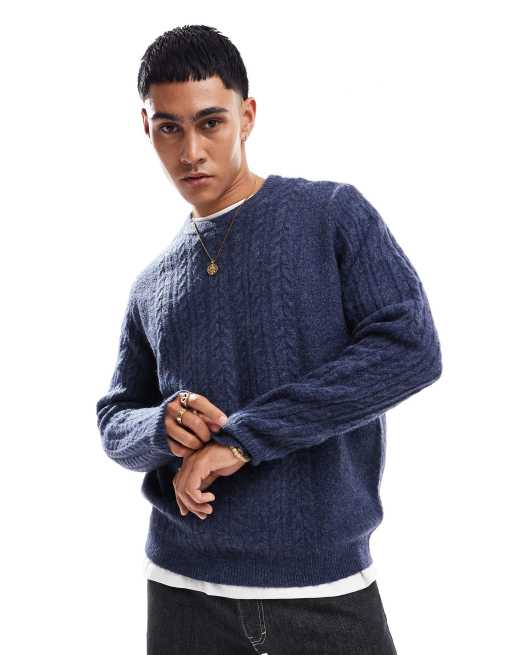 ASOS DESIGN – Marinblå, avslappnad, kabelstickad, slouchy tröja med rund halsringning