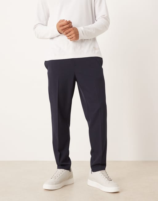 ASOS DESIGN – Marinblå, avsmalnande finbyxor med bekväm stretch och elastisk midja