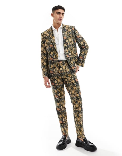 ASOS DESIGN – Marinblå, blommig kostym med smal passform
