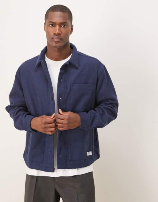 ASOS DESIGN – Marinblå, borstad skjorta i oversize med dragkedja och boxig passform