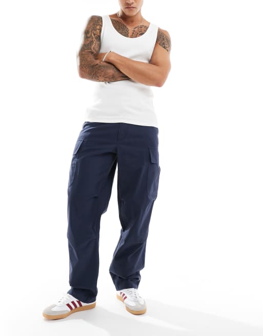 ASOS DESIGN – Marinblå cargobyxor i baggy-stil