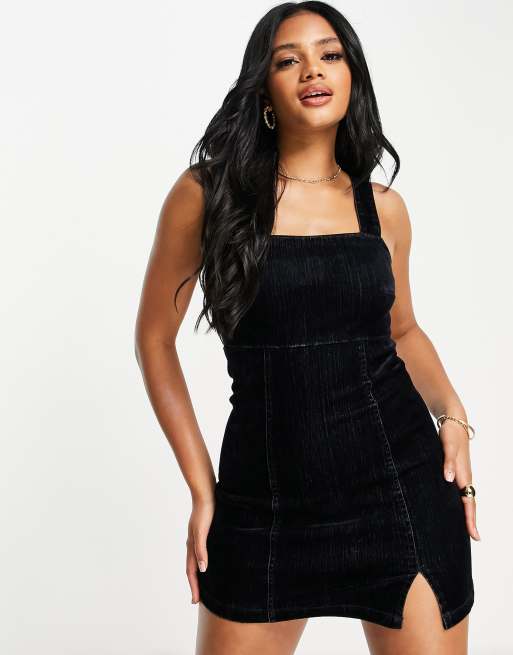 ASOS DESIGN – Marinblå figursydd miniklänning i sammet och förklädesmodell