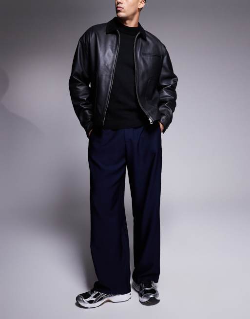 ASOS DESIGN – Marinblå finbyxor med bred passform