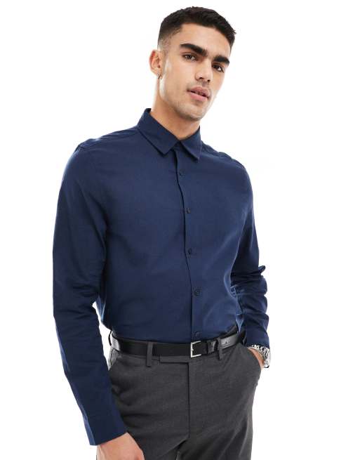 ASOS DESIGN – Marinblå finskjorta i linnetyg och regular fit