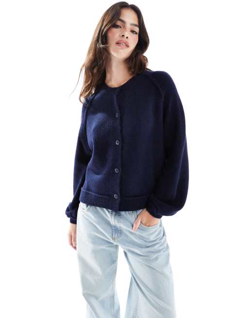 ASOS DESIGN – Marinblå, fluffig, stickad kofta med raglanärmar med synliga sömmar