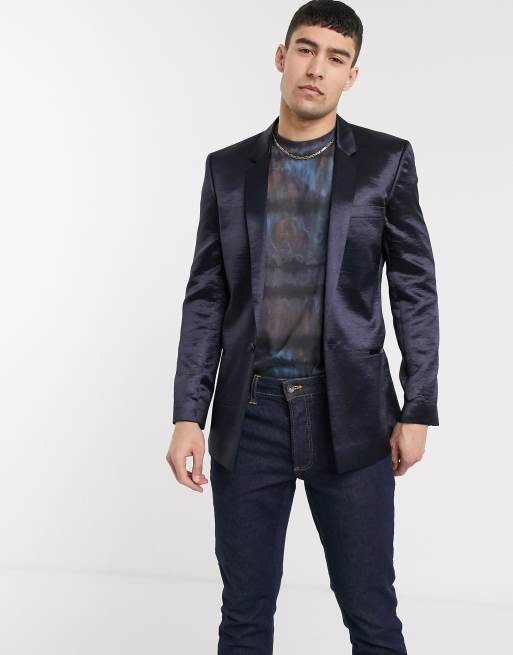 ASOS DESIGN – Marinblå glansig kavaj med smal passform