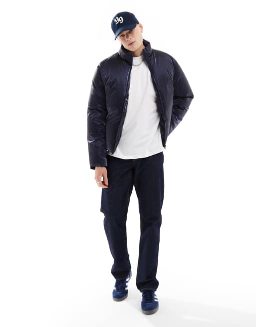 ASOS DESIGN – Marinblå, högglansig pufferjacka i oversize