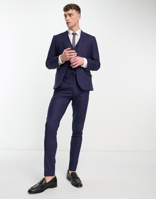 ASOS DESIGN – Marinblå kostym i linnemix med extra smal passform