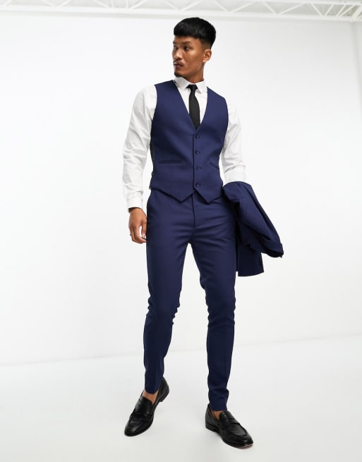 ASOS DESIGN – Marinblå kostym i mikrostrukturerat tyg med supersmal passform