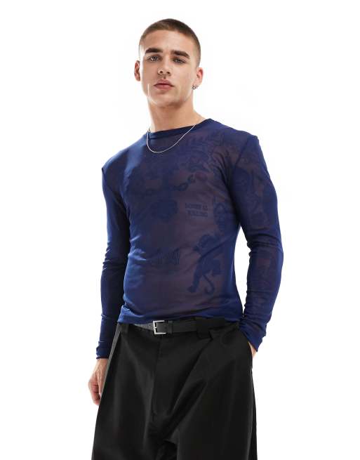 ASOS DESIGN – Marinblå långärmad t-shirt i muscle fit