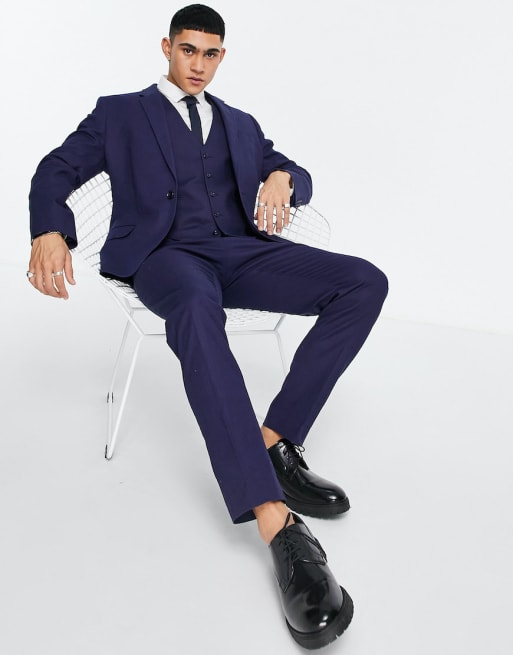 ASOS DESIGN – Marinblå linnekostym med smal passform