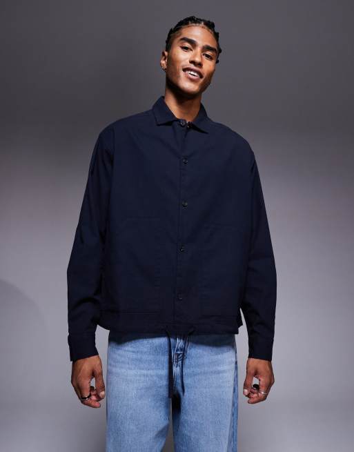 ASOS DESIGN – Marinblå manchesterskjorta i oversize och boxig passform